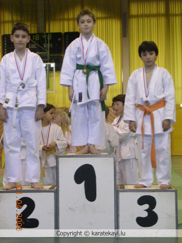 01/03/2006 Compétition pour enfants Hall sportif à Kayl dimanche 2 avril 2006, par Magali J. Voir les résultats de la compétition Pour lancer le diaporama, cliquez sur une vignette Répondre à cet article Partager précédent Coupe de Chiny suivant Namur Open-Cup